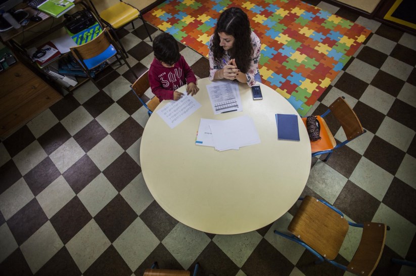 “Vamos fazer um jogo de palavras”, propõe Heliana Sá. À sua frente está B., de cinco anos, aluno do Jardim de Infância da Igreja, em Paços de Brandão. O rapaz tem um fato de treino vermelho e o cabelo desgrenhado. Debaixo da pequena mesa em que está sentado, não consegue ter as pernas paradas. “Quero que me digas os nomes todos os animais que conheces”, prossegue a psicóloga. A resposta da criança surge pronta: “Se for um dinossauro também conta?”.